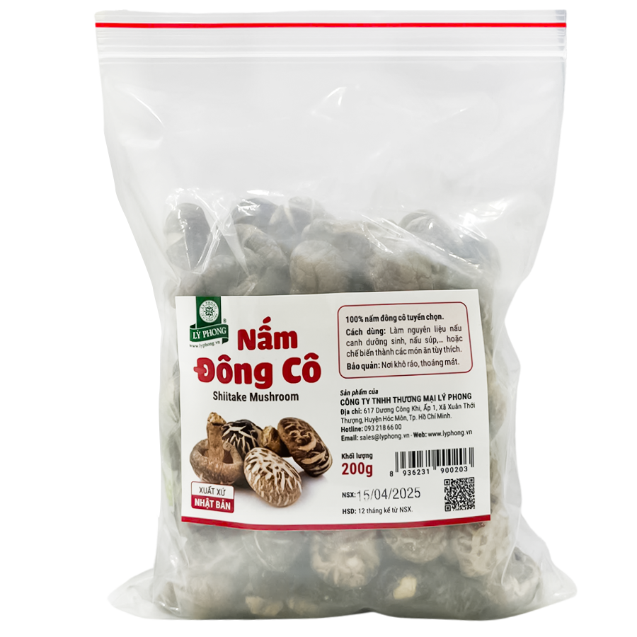 Nấm đông cô khô Lý Phong là sản phẩm được làm từ 100% nấm đông cô trắng nhập khẩu từ Nhật Bản.